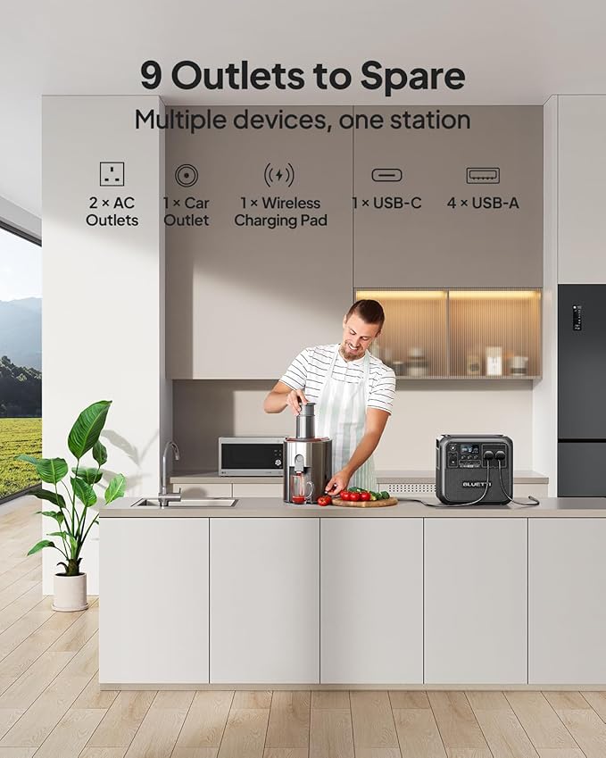 - [Power All Your Needs] - The AC180 boasts 1800W output and 9 outlets to handle almost anything you plug in. With a tap on the BLUETTI App, you can give it a boost to 2700W for your higher needs.